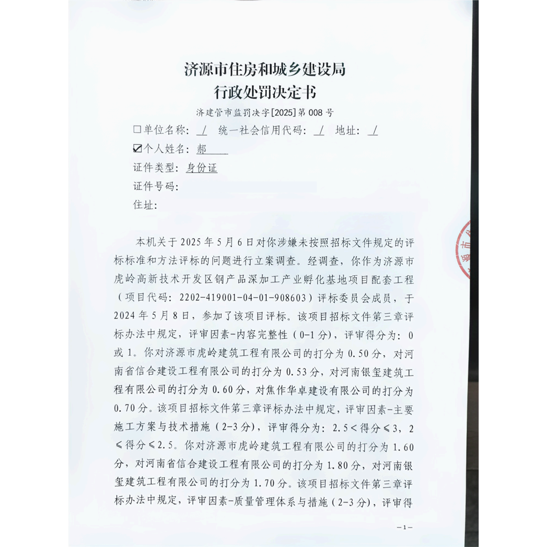 济源市住房和城乡建设局行政处罚决定书济建管市监罚决字(2025)第008号