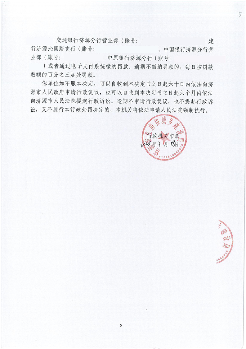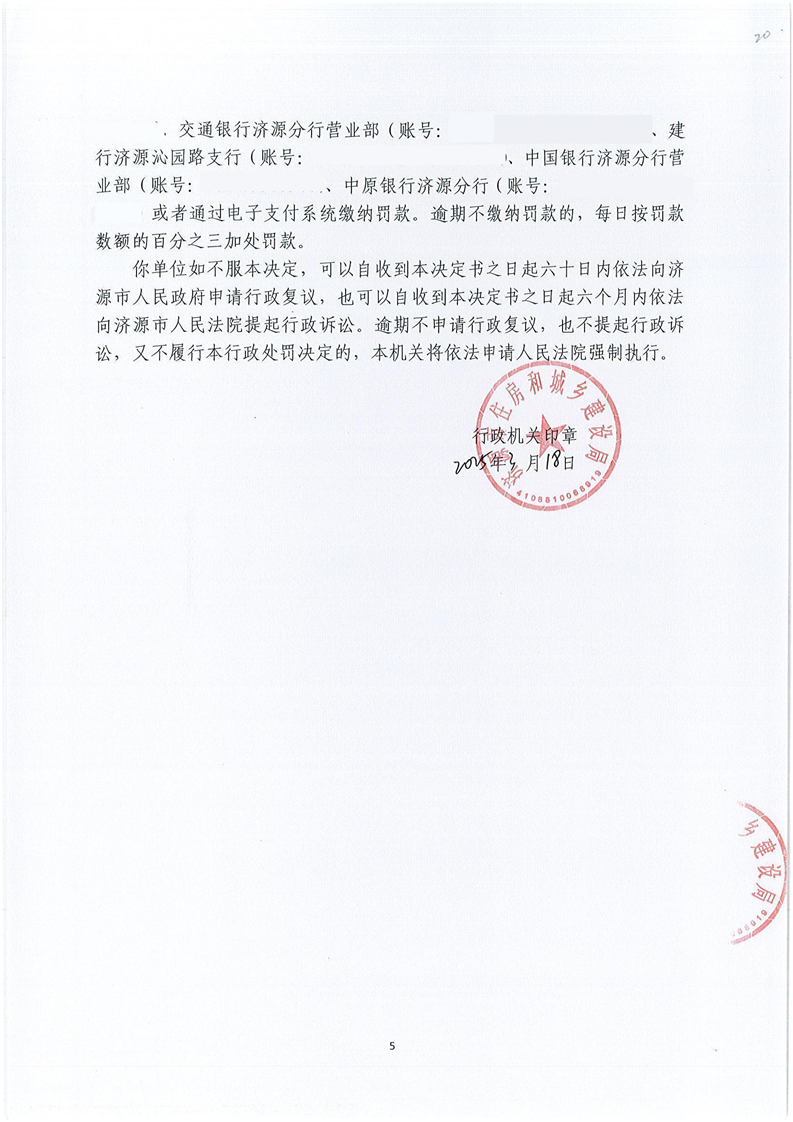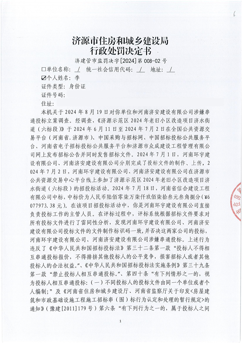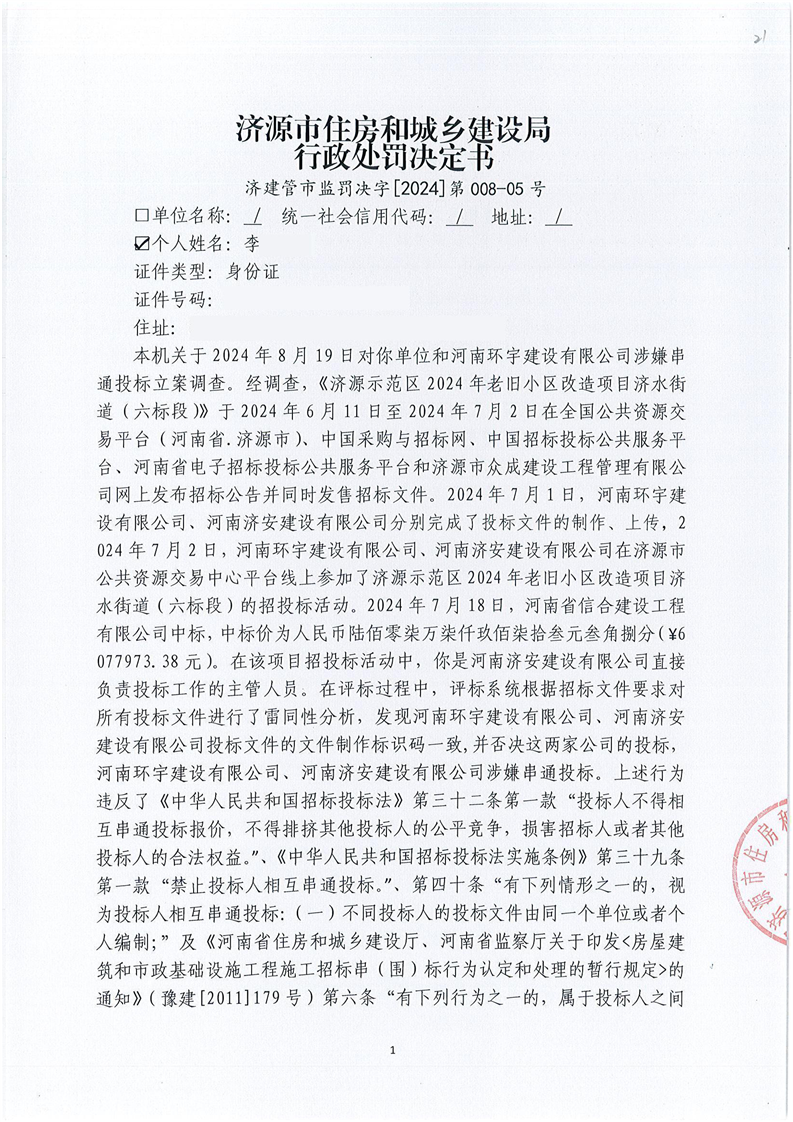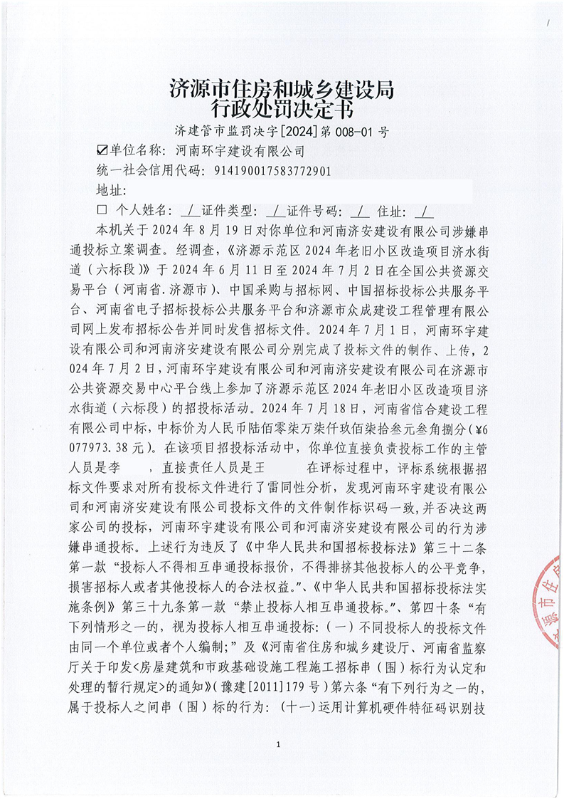 济源市住房和城乡建设局行政处罚决定书济建管市监罚决字(2024)第008—01号