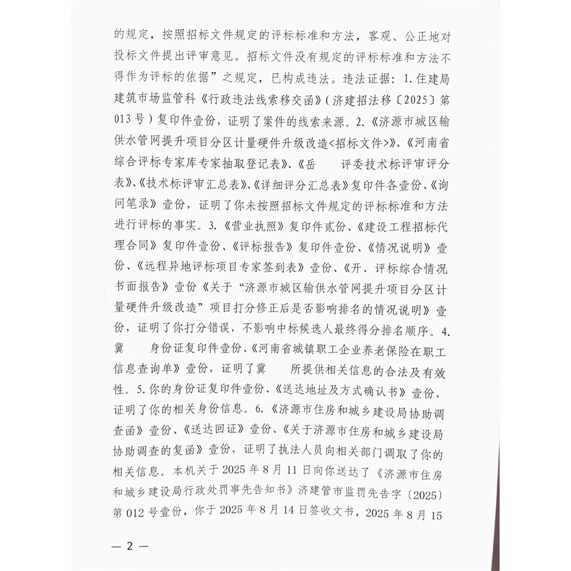 济源市住房和城乡建设局行政处罚决定书济建管市监罚决字(2025)第012号