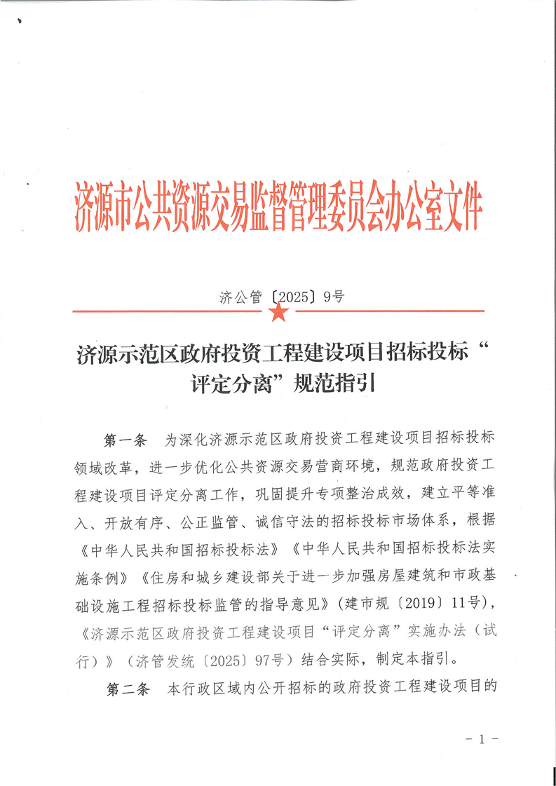 济源示范区政府投资工程建设项目招标投标“评定分离”规范指引