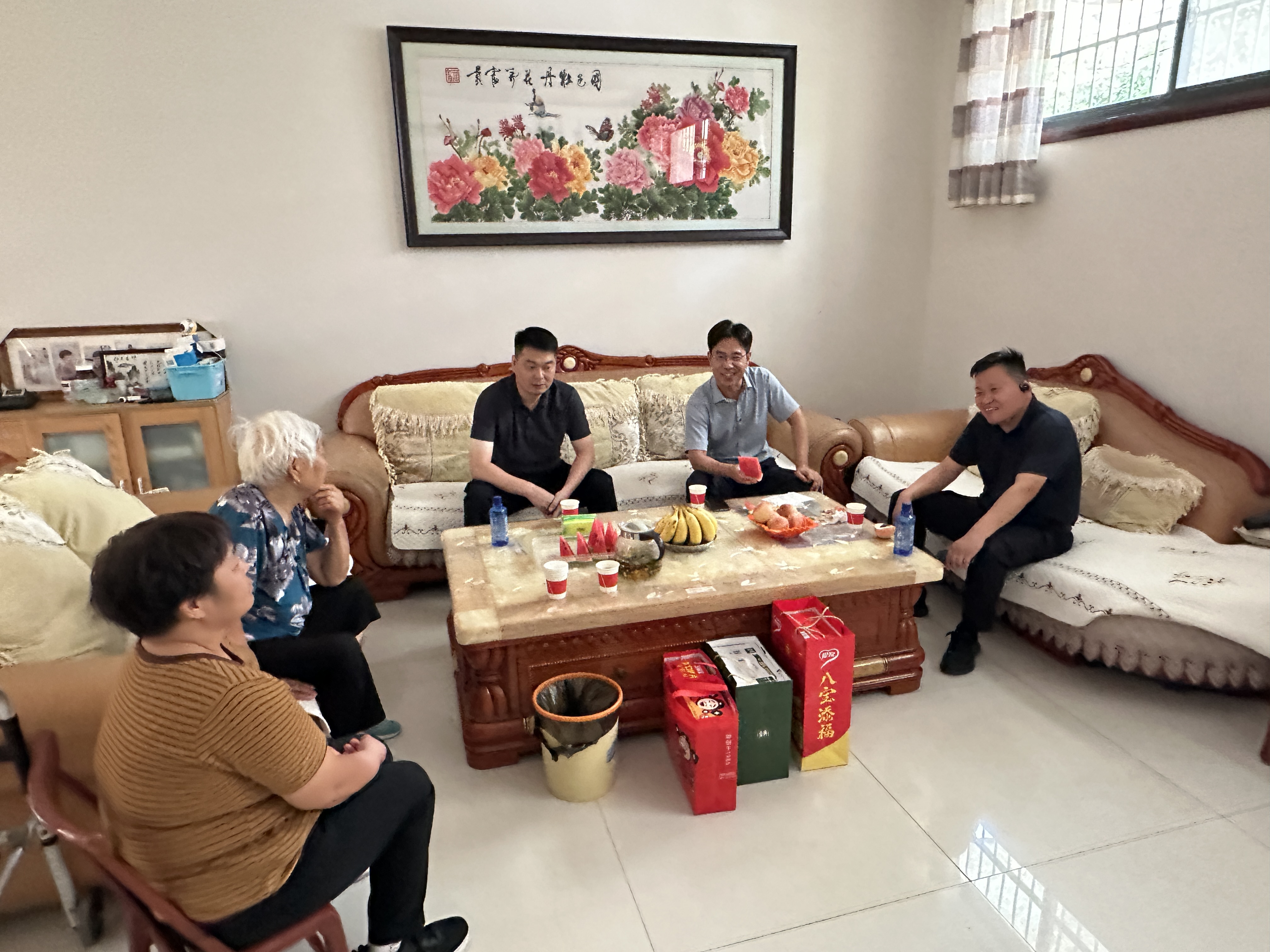 在退役军人家中,示范区公共资源交易中心党组书记、主任赵浩,党组成员、副主任付利民与家属亲切交谈,详细询问他们的健康状况和生活需求,代表中心党组向他们送去关怀和问候。