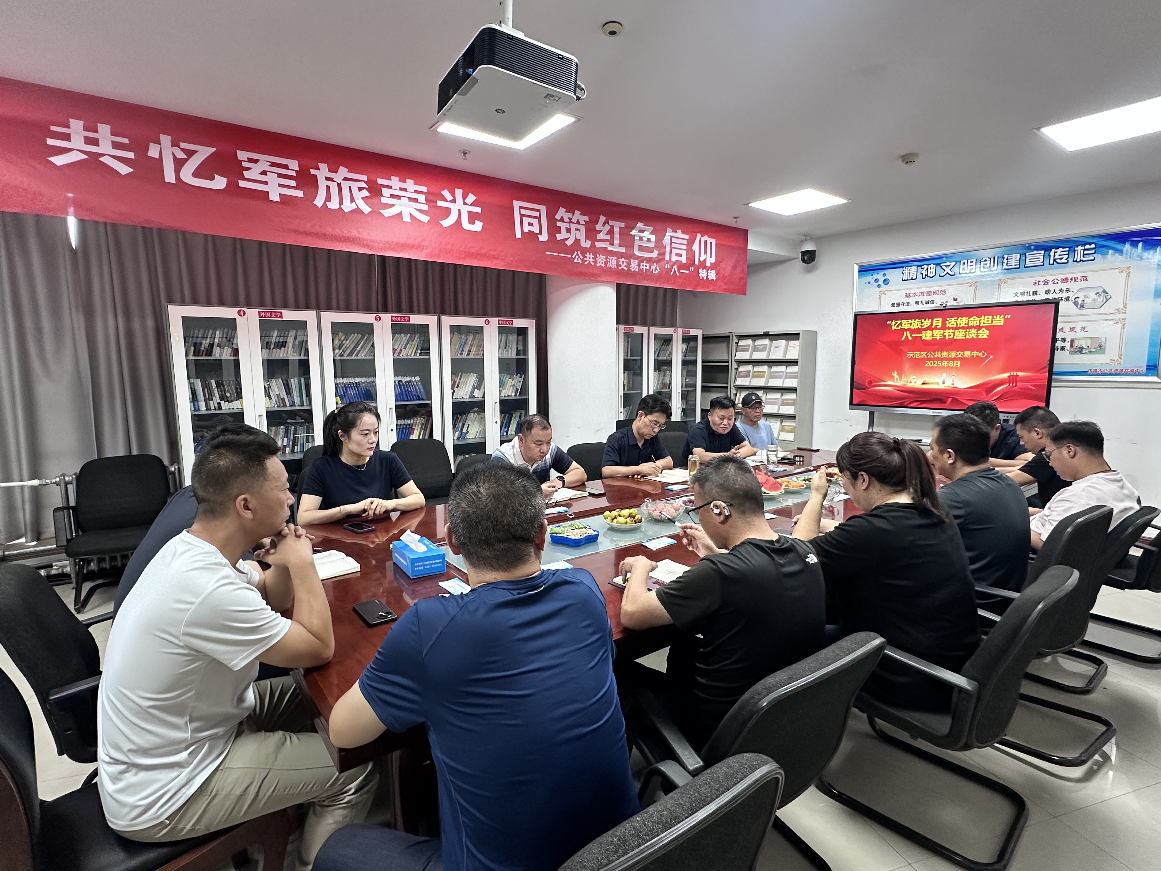 “退伍不褪色,退役不退志”。在“八一”退役军人座谈会上,10余名退役军人畅谈军旅生涯,深情回顾难忘经历,并结合自身实际分享了将军队优良传统融入到日常工作的生动实践,表达了对组织关怀的感激之情和继续为公共资源交易事业拼搏奉献的决心。